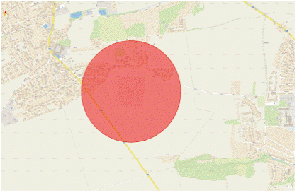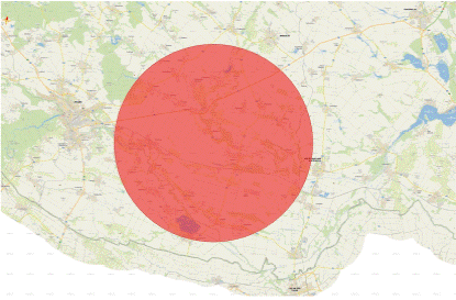 b)  Újezd u Uničova, které se nachází v Moravskoslezském kraji, okrese Bruntál, a v Olomouckém kraji, okrese Olomouc a má tvar kružnice o poloměru 10 km se středem určeným 49,7515578N, 17,1831533E (N 49°45'05.608”, E 017°10'59.352”),